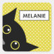 Pegatina Cuadrada El curioso gato negro amarillo polka punto persona