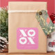 Perfecto para bolsos de regalo y envoltura de regalo. Este moderno pegatina el día de San Valentín cuadrado tiene esquinas redondeadas, grandes tipos de xoxo blanco con corazones blancos en el centro del o's sobre un fondo rosado.
