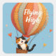 Pegatina Cuadrada El gato lindo el globo de aire caliente el arte ca