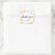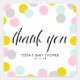 Colorido Pastel Confetti Dots Frame Gracias Pegatina Cuadrado | Enviar agradecimiento a los invitados por ser parte de su evento con este pegatina de personalizable. Esto se puede añadir a favores o tarjetas. El marco es de colores rosa, gris, azul y amarillo, con tipografía caprichosa.