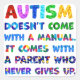 Mensaje inspirador de "AUTISMO no viene con manual. Viene con un padre que nunca se rinde" para apoyar a los orgullosos padres del autismo.