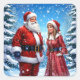 Pegatina Cuadrada El Papá Noel festivo y la Sra. Claus