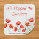 Pegatina Cuadrada Él Pidió la Mano Flor de Amapola Desayuno Nupcial