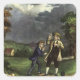 Pegatina Cuadrada El relámpago de Benjamin Franklin con experimento