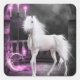 "El unicornio encantado" Un majestuoso unicornio blanco se sostiene con gracia en una plataforma de piedra enmarcada por altos arcos góticos. Su cuerpo fluye suavemente, brillando ligeramente a la luz de la luna, mientras que un halo suave de bruma y magia corre a su alrededor. El cuerno del unicornio brilla con una luz etérea, lo que arroja un suave resplandor a través de un ambiente oscuro y encantador. Alrededor de ella hay velas rosas brillantes flotando, suspendidas en el aire como centinelas silenciosas. Los torbellinos de luz se elevan desde el suelo y flotan hacia arriba, añadiendo un sentimiento de encanto a la escena. Detrás de ella, rosas pálidos florecen a lo largo de las arcadas, y una bruma suave y soñadora avanza a lo largo del suelo, dándole a todo el espacio un aire místico y de otro mundo. Es como si el tiempo se hubiera detenido — un momento secreto en un reino oculto donde la magia todavía perdura.