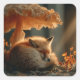 Pegatina Cuadrada El zorro rojo durmiendo bajo hongo gigante
