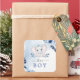 Pegatina Cuadrada Elefante con anémonas azules es un niño Baby Showe