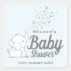 Pegatina Cuadrada Elefante lindo y Baby Shower azul confetti