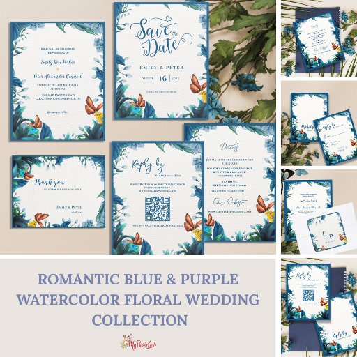 Perfect for sealing envelopes, decorating favors, or adding a special touch to your wedding gifts, this versatile sticker complements the entire Blue Botanical Butterfly Wedding Collection.