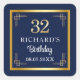Pegatina Cuadrada Elegant Blue Gold 32nd Birthday Party