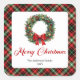 Pegatina Cuadrada Elegant Christmas Wreath Red Green Plaid Stickers
