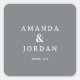 This wedding sticker features a minimalist and elegant design with a solid gray background, creating a sophisticated look. The clean, modern sans-serif typography highlights the names "Amanda & Jordan" in all caps, centered for balance, while the phrase "thank you" adds a touch of gratitude below. The ample negative space enhances readability and contributes to an airy feel, making it perfect for expressing appreciation at your special event. Ideal for weddings or formal occasions, this sticker combines understated style with a professional yet warm atmosphere.