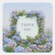 Bring the vibrant, joyful energy of a spring garden to your packaging with this beautiful floral thank you sticker. The design features a stunning, realistic depiction of an overflowing wildflower meadow in full bloom. A lush, vibrant mix of periwinkle blue, soft lavender, and lilac flowers clusters together, accented by small, cheerful pops of warm orange blossoms and abundant, fresh green foliage. This beautiful, organic floral border frames a clean, solid white central text box, all set against a very pale, misty blue sky. These stickers are perfect for businesses that want to convey a natural, fresh, and rustic charm, such as boutique florists, garden centers, artisan soap or candle makers, farm-to-table cafes, or wedding planners specializing in garden themes. This versatile design can also be used to beautifully seal envelopes for spring garden parties, bridal showers, or as a charming accent on all types of gift wrapping and party favors.