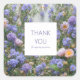 Add a touch of natural, rustic beauty to your packaging with this stunning floral thank you sticker. The design features a breathtaking, realistic depiction of an overflowing wildflower meadow, bursting with a vibrant mix of colors. Lush periwinkle blue, soft lilac, pale pink, and light peach-orange flowers are all densely packed with fresh, green foliage, creating a full, romantic, and organic frame. This beautiful, rustic botanical arrangement surrounds a crisp, modern white square, providing a clean, sophisticated contrast for your message. These stickers are perfect for businesses with a natural or boho aesthetic, such as boutique florists to seal bouquet wrapping, artisan soap makers or apiaries as a product label, farm-to-table cafes to seal to-go bags, or garden centers. This versatile design can also be used to beautifully seal envelopes for garden party invitations, spring weddings, or as a charming accent on all types of gift wrapping and party favors.
