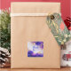 Make a vibrant and luxurious statement with this elegant floral thank you sticker. The design features a stunning, lush arrangement of flowers in rich, jewel tones of royal purple, deep violet, and bright magenta, reminiscent of beautiful hydrangeas. These vibrant blooms are artfully interwoven with brilliant, metallic gold leaves and delicate sprays of sparkling gold glitter, creating a magical, high-end, and enchanting feel. The entire floral frame surrounds a soft, dreamy, out-of-focus lavender background. At the center, a minimalist, thin gold rectangular frame provides a sophisticated and clean focal point. These stickers are perfect for businesses that want to convey luxury and vibrancy, such as high-end event planners for sealing gala invitations, boutique florists for luxury arrangements, cosmetic or perfume brands for elegant packaging, or upscale jewelers. This versatile design can also be used to beautifully seal envelopes for glamorous weddings or milestone birthdays, or as a sophisticated accent on party favors and gift wrapping.