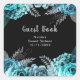 Pegatina Cuadrada Elegant Teal Blue and Silver Flowers Sweet Sixteen
