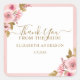Una elegante etiqueta de agradecimiento de despedida de soltera floral rosa y dorada. Personalízala con tu nombre y fecha. Diseñada para ti por Blackberry Boulevard.