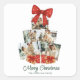 Pegatina Cuadrada Elegante árbol de Navidad familiar con lazo rojo e