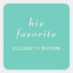 Pegatina Cuadrada Elegante Awe Acuático Simple con Monograma Boda
