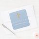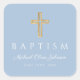 Pegatina Cuadrada Elegante Bebé Azul Religioso Cross Boy Baptismo