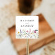 Elegantes etiquetas de boda florales con un borde inferior de flores silvestres acuáticas y follaje en tonos rosa, amarillo, violeta, azul y verde sobre un fondo blanco. Personalice los stickers de boda de flor silvestre con sus nombres o texto personalizado. Los stickers de boda personalizados con flores silvestres son perfectos para sellar sobres bodas, bolsas de favores y más. Diseñado para coordinar con nuestra colección de bodas Elegant Wildflower Meadow.