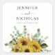 Pegatina Cuadrada Elegante Boda Floral de girasoles
