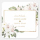 Pegatina Cuadrada Elegante Boda Imperial Blanco Lilies Gold