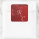 Pegatina Cuadrada Elegante Boda Rojo Monogramado