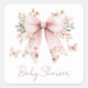 Pegatina Cuadrada Elegante Chica Floral Rosa Bow Baby Shower