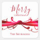 Pegatina Cuadrada Elegante Cinta Roja Personalizada Feliz Navidad