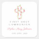 Elegante Cruz Floral Rosa Primero Comunión Pegatina Cuadrado.