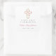 Pegatina Cuadrada Elegante Cruz Floral Rosa Primera Comunión