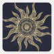 Pegatina Cuadrada Elegante Dorado Sun Mandala Blue Nebula Diseño