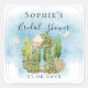 Pegatina Cuadrada Elegante Estatua Gazebo Doves Flores Bridal Shower