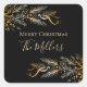 Pegatina Cuadrada Elegante Feliz Navidad con oro negro personalizado