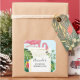 Fiesta salva a los pegatinas de citas con un flamingo rosa lindo y caprichoso. Rodeado de hojas tropicales verdes y flores de hibisco rojas y amarillas. Un rectángulo con forma de rectángulo, con un gradiente dorado en el centro.
