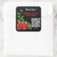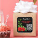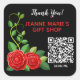 Pegatina Cuadrada Elegante Flor Rosa Roja Gracias Código QR
