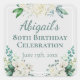 Pegatina Cuadrada Elegante Floral rosa blanca 80 cumpleaños Cualquie