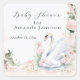 FAVOR DE SHOWER PARA BEBÉ NIÑA PEGATINA O SELLOS DE SOBRES | Este diseño de cuento de hadas es muy femenino con un lazo de satén rosa y un borde rosa pálido con flores rosadas y una elegante mamá y bebé cisne blanco para enmarcar tu texto. Hay una colección completa de productos disponibles para coordinar: MSP0122