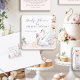 Pegatina Cuadrada Elegante Floral Rosa Claro con Lazo para Baby Show