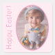 El diseño presenta una foto personalizada en una elegante forma oval enmarcada junto con una tipografía de personalizable que dice "¡Feliz Pascua!" Es una tarjeta elegante para compartir fotos de los niños y difundir la alegría de la fiesta. Para solicitudes o preguntas especiales, póngase en contacto con el artista en wafadahdalcreates@gmail.com. © Wafa Y. Dahdal - Reservados todos los derechos.