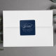 Elegantes pegatinas de graduación con "Grad" en escritura caligráfica blanca con el nombre del graduado, la escuela y el año de graduación que se muestran a continuación. Los pegatinas de graduación de la marina son perfectos para sellar sobres, bolsas de favores, etc.