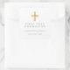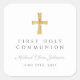 Elegante y personalizado Pegatina cuadrado de la primera comunión del chico de la cruz verde sabio