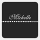 Pegatina Cuadrada Elegante Monograma Corazón Blanco Negro