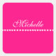 Pegatina Cuadrada Elegante Monograma Corazón Blanco Rosa