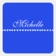 Pegatina Cuadrada Elegante Monograma Corazones Blancos Azul Real