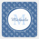 Pegatina Cuadrada Elegante Monograma de Corazón Azul y Blanco con No