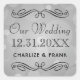 Pegatina Cuadrada Elegante Monograma de Nuestro Boda con Rollo Gris