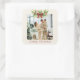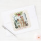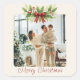 Pegatina Cuadrada Elegante Navidad con Acebo y Lazo Rojo -