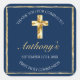 Pegatina Cuadrada Elegante Oro Azul Primera Santa Comunión Gracias
